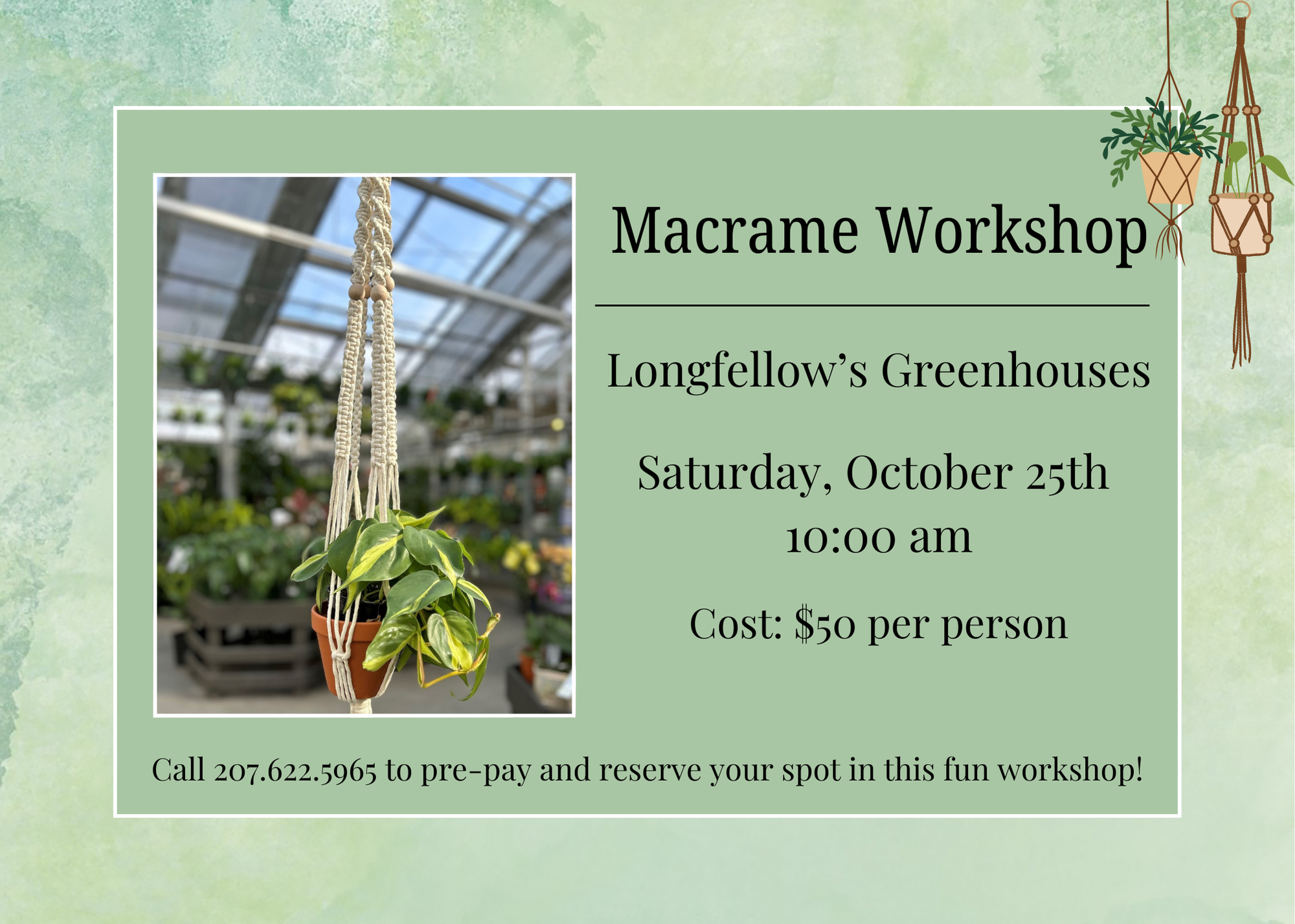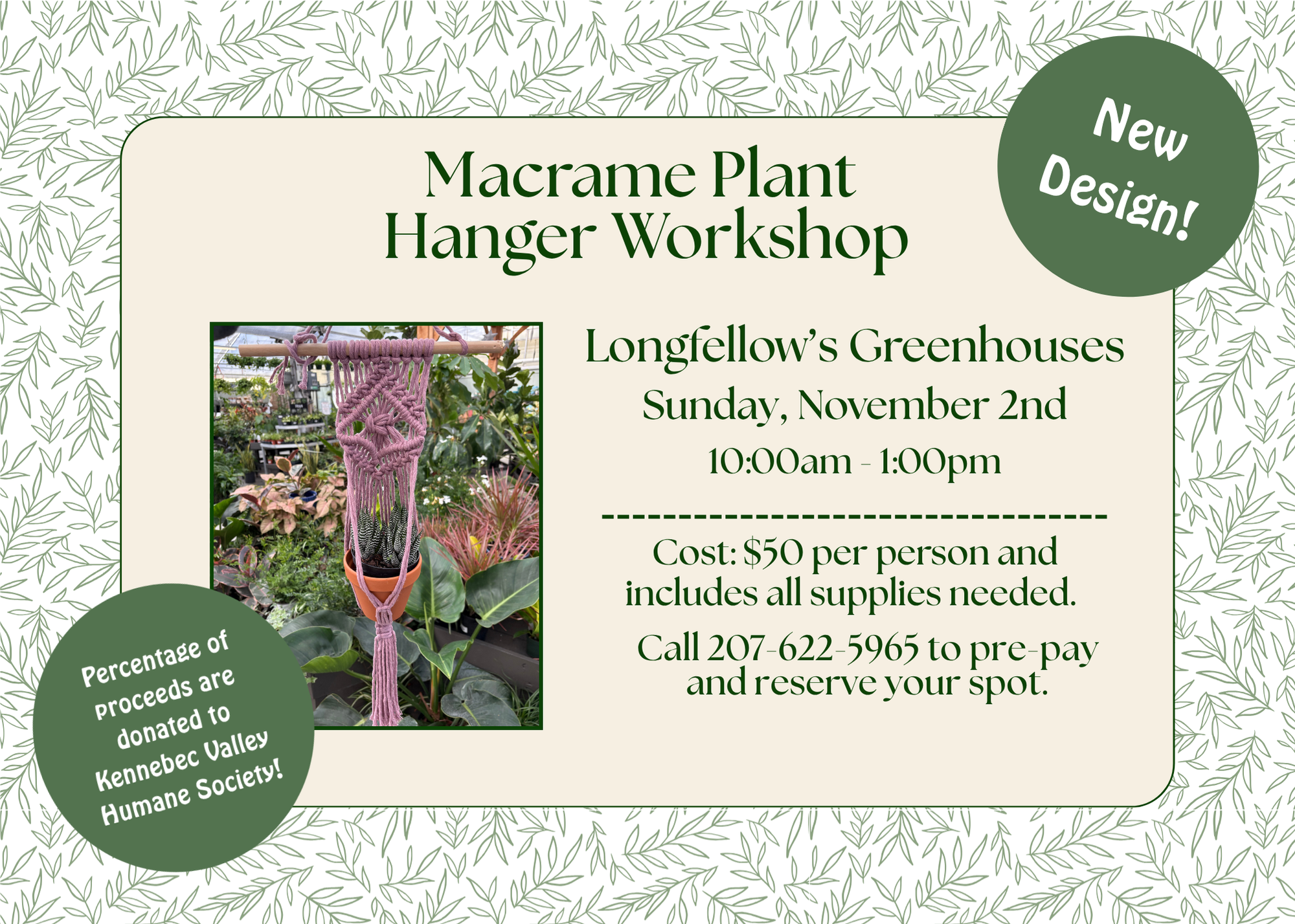 October 19th, 10am - Longfellow's Greenhouses with Kerri Day Build a beautiful terrarium from start to finish - no experience needed! In this hands-on workshop, you'll choose from a variety of 2" mini foliage plants and design a unique terrarium using a glass container and plenty of creative "ingredients" to create your masterpiece. We'll provide [...]