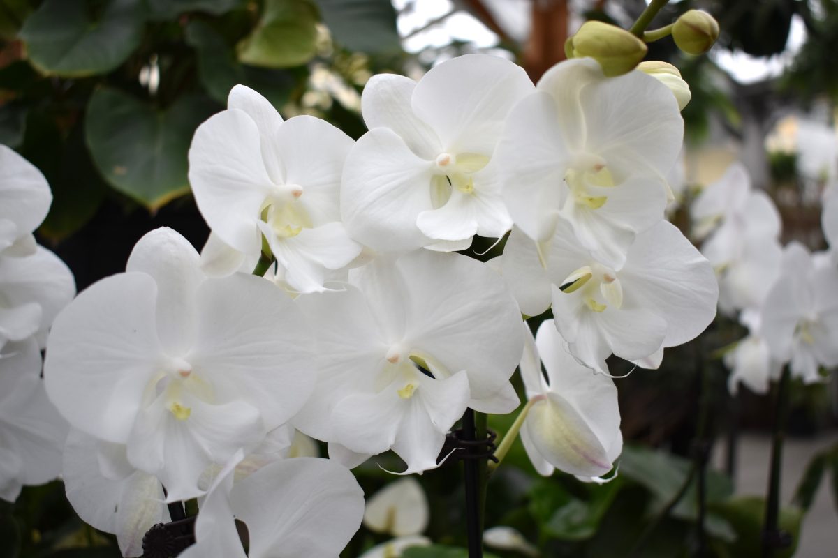 After Flowering Care: Once all the flowers have dropped from the bloom spike, there are multiple options for aftercare. You can remove the entire spike by cutting it back at the base of the orchid. This will give the plant a “cleaner” appearance, but it may take longer for the orchid to bloom again. Alternatively, you can trim the spike just below the point where the first bloom appeared, about half an inch above an active node. This may encourage the orchid to bloom more quickly from the same spike. If the bloom spike turns brown and dries up, it should be removed at the base, as it is spent and will not remove any new flowers. After flowering, continue to care for your orchid as usual. To encourage future blooms, fertilize about every two weeks during the growing season and reduce fertilizing in the winter months.