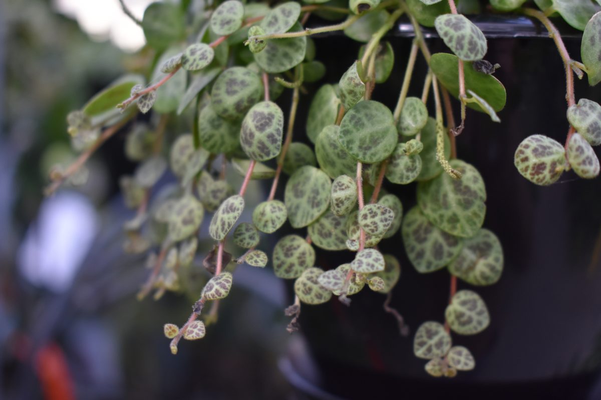 String of Turtles is a variety of trailing peperomia and makes a wonderful plant for small spaces. They grow beautiful trails, giving the effect that there is a lot of plant, without it taking up much room on a windowsill. These plants are slow growing and will tolerate a haircut well, so if they get too long you can simply trim them.